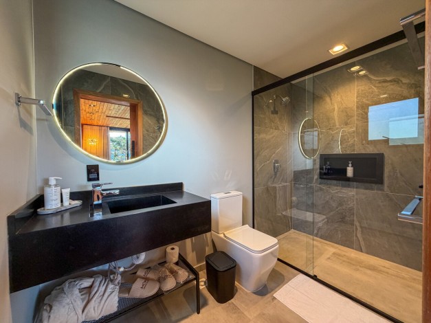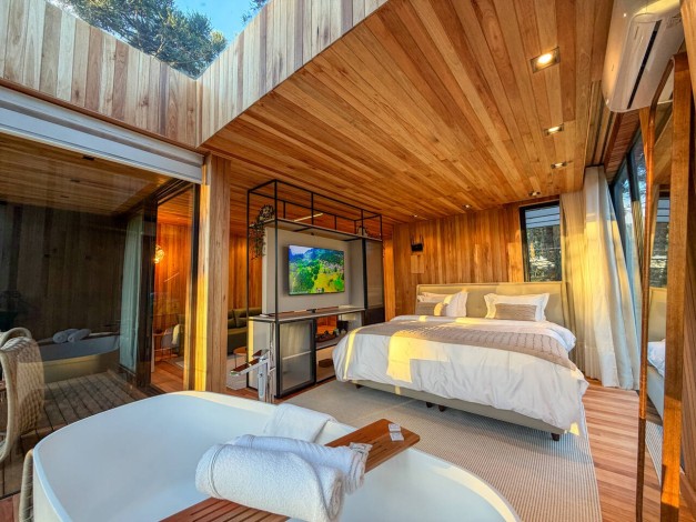 A Cabana Akräs é um convite à imersão profunda na filosofia Mökki. Batizada em homenagem ao espírito protetor dos campos, esta acomodação de 65 m² foi projetada para quem busca o equilíbrio perfeito entre a robustez da montanha e a elegância do design nórdico. Com uma vista panorâmica que emoldura a altitude de Urubici, a Akräs oferece uma experiência sensorial completa, onde o minimalismo da arquitetura se une ao conforto de alto padrão para que seu único compromisso seja o descanso absoluto.